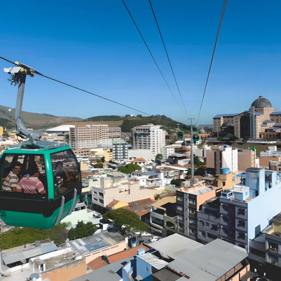 Our latest detachable ropeway system. It transports the visitors of the largest cathedral in South America, the Basilica of the National Shrine of Our Lady of Aparecida, to the viewpoint nearby. This viewpoint, the Morro do Cruzeiro, offers a fantastic view over Aparecida.